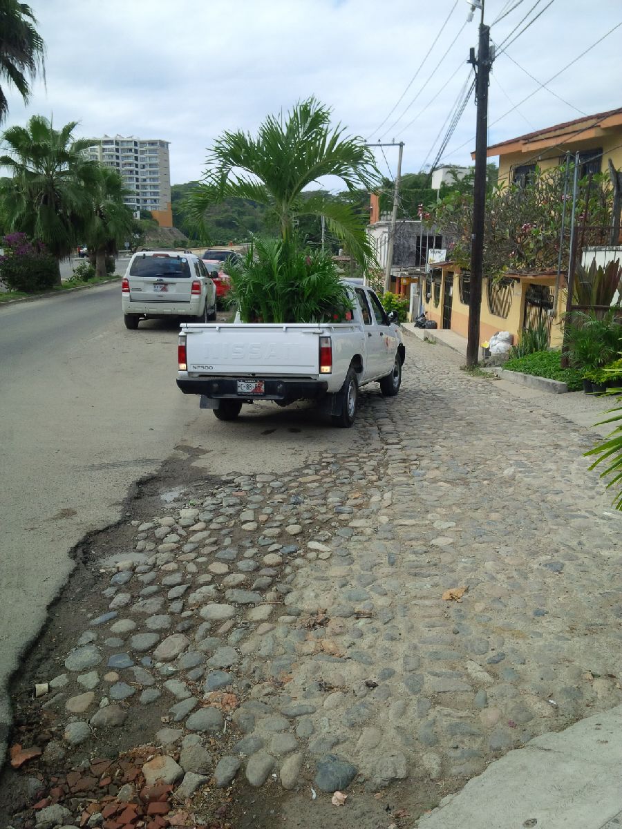 And it’s not just exhausting – I literally have 2 or 3 bruises on my arms and knees from hitting the dash and the door of the car while we bump over the roads and the mountainous topes (speed bumps).   I guess the real problem is that we’re cheap.  We went to every Vivero in the district because the prices were just too different.  We really needed to compare.  We bought a 12-foot palm tree for $250 pesos (about $20) but another garden quoted us $2500 pesos.  So I’m not exactly complaining – just realizing that we need to pace ourselves a bit and plan our routes each time we leave the house.  And maybe wear kneepads and elbow pads.